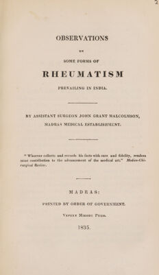 Credit: Observations on some forms of rheumatism prevailing in India / By ... John Grant Malcolmson. Source: Wellcome Collection.