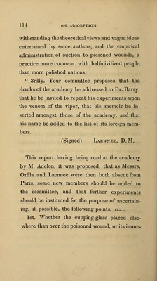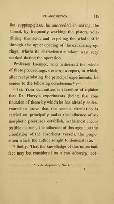 Experimental researches on the influence exercised by atmospheric pressure upon the progression of the blood in the veins : upon that function called absorption, and upon the prevention and cure of the symptoms caused by the bites of rabid or venomous animals ... / by David Barry.