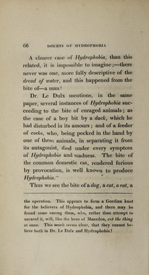 Credit: Doubts of hydrophobia, as a specific disease, to be communicated by the bite of a dog; with experiments on the supposed virus generated in that animal, during the complaint termed madness ... / By Robert White. Source: Wellcome Collection.