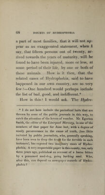Doubts of hydrophobia, as a specific disease, to be communicated by the bite of a dog; with experiments on the supposed virus generated in that animal, during the complaint termed madness ... / By Robert White.
