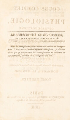 Credit: Cours complet de physiologie, ouvrage posthume ... / [ed.] par ... le Docteur Lanthois. Source: Wellcome Collection.