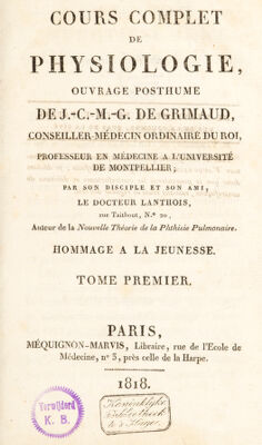 Cours complet de physiologie, ouvrage posthume ... / [ed.] par ... le Docteur Lanthois.