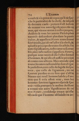 L'examen des esprits povr les sciences, ou se monstrent les differences d'esprits, qui se trouuent parmy les hommes, & a quel genre de science chacun est propre en particulier / Nouuellement traduit suiuant l'ancien original, et augmenté [by C. Vion d'Alibrai] De la derniere impression d'Espagne.