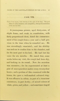 Cases illustrative of the efficacy of various medicines admiinistered by inhalation in pulmonary consumption; in certain morbid states of the trachea and bronchial tubes, attended with distressing cough; and in asthma / [by Charles Scudamore].